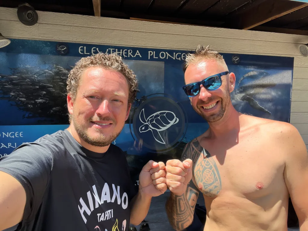 Lui est venu pour décrocher son GPP, Guide de Plongée Polynésien. Le Graal. Il est passé par tout ce qu’il faut passer, PADI, Divemaster, instructeur (des trucs que je comprends toujours pas vraiment mais qui ont l’air sérieux).